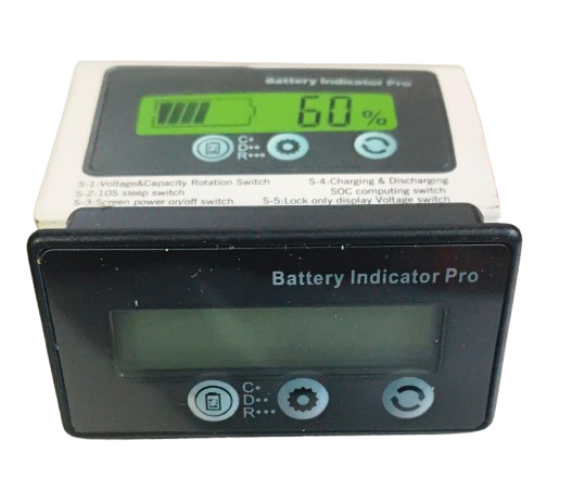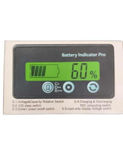 he Battery Capacity Voltage Meter can not only measure the battery voltage but also the capacity, show you with percentage. The battery monitor is designed with a high-quality LCD, LCD screen with green backlit offers a clear and bright display from every angle. Equipped with a PVC film, the surface is waterproof. Long service life button with comfortable hand feeling. Built with buckle, free of screw installation. Battery meter can be applied to portable mobile equipment, electron mobile, balance car, cleaning machine, measuring equipment, etc.