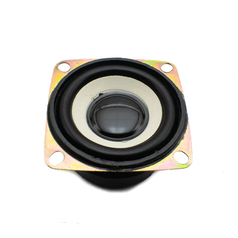 This is a general-purpose 4 Ohm 5-Watt Speaker which is generally used for all types of audio projects. It has a balanced frequency response and high efficiency. Very good high-range response. This is a transducer that converts electromagnetic energy into sound waves. It receives analog or digital inputs from computers or audio players and converts them into sound waves. The speaker has a resistance of 4 ohms and a power rating equal to 5W. Its small size allows it to be used in various applications where space is at a premium. This is used in general warning alarms for some projects, Simple amplifier projects, For TV & Music systems, and will also fit in robotics projects. You can drive it on any of the MCU or development boards like Arduino, NodeMCU and Raspberry Pi, etc. Small in size, so this speaker is best for DIY projects.