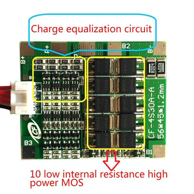4 Series 30A 18650 Lithium Battery Protection Board 14.8V 16V with Cable, a Balance Board for Drill Motor Lipo Cell Module comes with recovery function-AUTO Recovery and Integrated 10 low load resistance MOS tube.