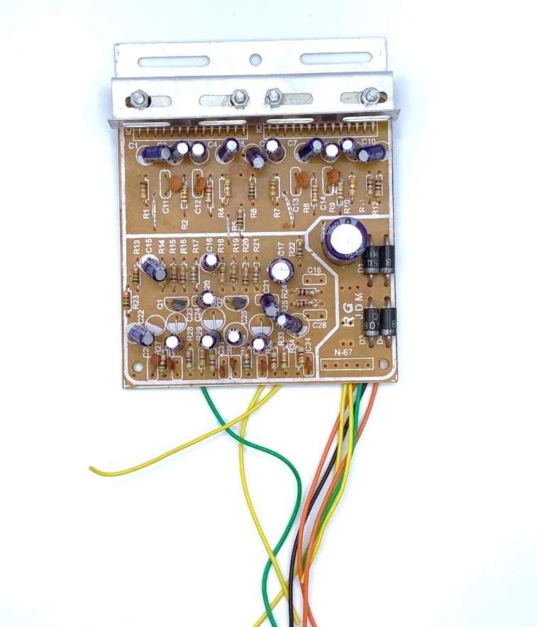 This board is used for 80-watt audio amplification. The board contains a bridge rectifier on board. It means you just need to attach a 12 volts transformer to it and the board is ready to go. The best part about the board is that it is built of individual components. It means if anything goes wrong it can be easily serviced and components can be replaced.