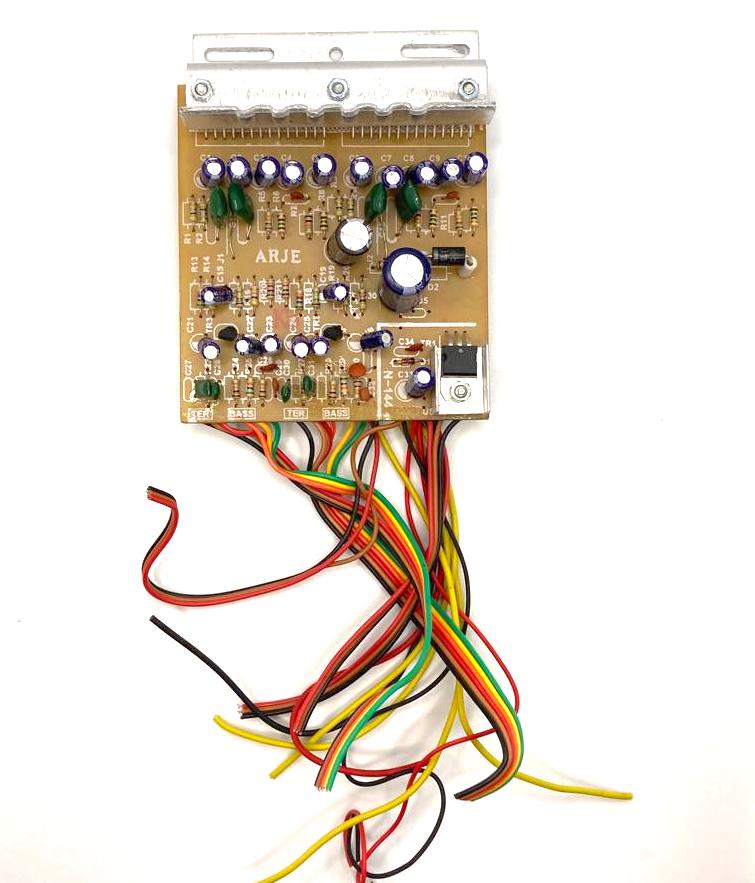 This board is used for 80-watt audio amplification. The board contains a bridge rectifier on board. It means you just need to attach a 12 volts transformer to it and the board is ready to go. The best part about the board is that it is built of individual components. It means if anything goes wrong it can be easily serviced and components can be replaced.