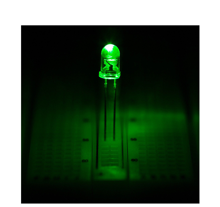It is a 5mm Green DIP LED. A light-emitting diode (LED) is a semiconductor light source that emits light when current flows through it. Electrons in the semiconductor recombine with electron holes, releasing energy in the form of photons. The color of the light (corresponding to the energy of the photons) is determined by the energy required for electrons to cross the band gap of the semiconductor. White light is obtained by using multiple semiconductors or a layer of light-emitting phosphor on the semiconductor device.