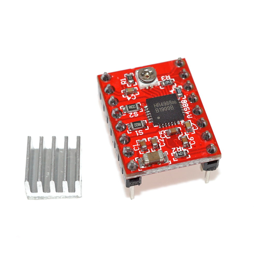 The A4988 driver Stepper Motor Driver is a complete micro-stepping motor driver with built-in converter, easy to operate. It operates from 8 V to 35 V and can deliver up to approximately 1 A per phase without a heat sink or forced air flow (it is rated for 2 A per coil with sufficient additional cooling).