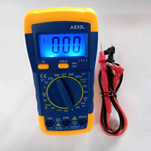 The Best Digital Multimeter A830L is an all-purpose and trustworthy 2000W Digital Multimeter intended for accurate electrical measurements. This Zoyi Digital Multimeter provides accurate measurements of voltage, current, resistance, and power, making it a must-have for professionals as well as hobbyists. A830L Digital Multimeter with LCD display delivers real-time data for easy comprehension, even under low-light conditions. The A830L has automatic range selection, continuity testing, diode testing, and data hold to ensure effective troubleshooting. Safety protection against over-voltage and overcurrent damage is built in, along with a low battery indicator to provide continuous performance. Tough, compact, and easy to use, this multimeter 2000W is ideal for electrical diagnostics.
