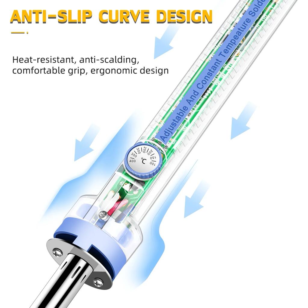 Here is a soldering iron with temperature control from 100 to 400 ° C, for a maximum power of 60W. Ideal for DIY projects and installations. Its original “transparent” design lets you see every component inside.