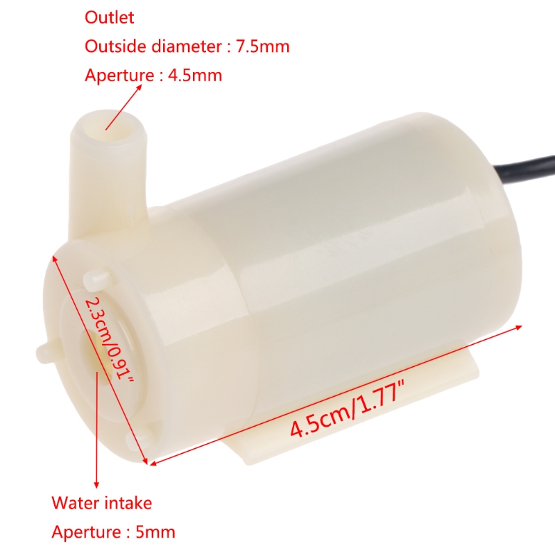 DC 3-6v mini micro submersible water pump is a low cost, small size Submersible Pump Motor which can be operated from a 2.5 ~ 6V power supply. It can take up to 120 liters per hour with very low current consumption of 220mA. Just connect tube pipe to the motor outlet, submerge it in water and power it. Make sure that the water level is always higher than the motor. Dry run may damage the motor due to heating and it will also produce noise.