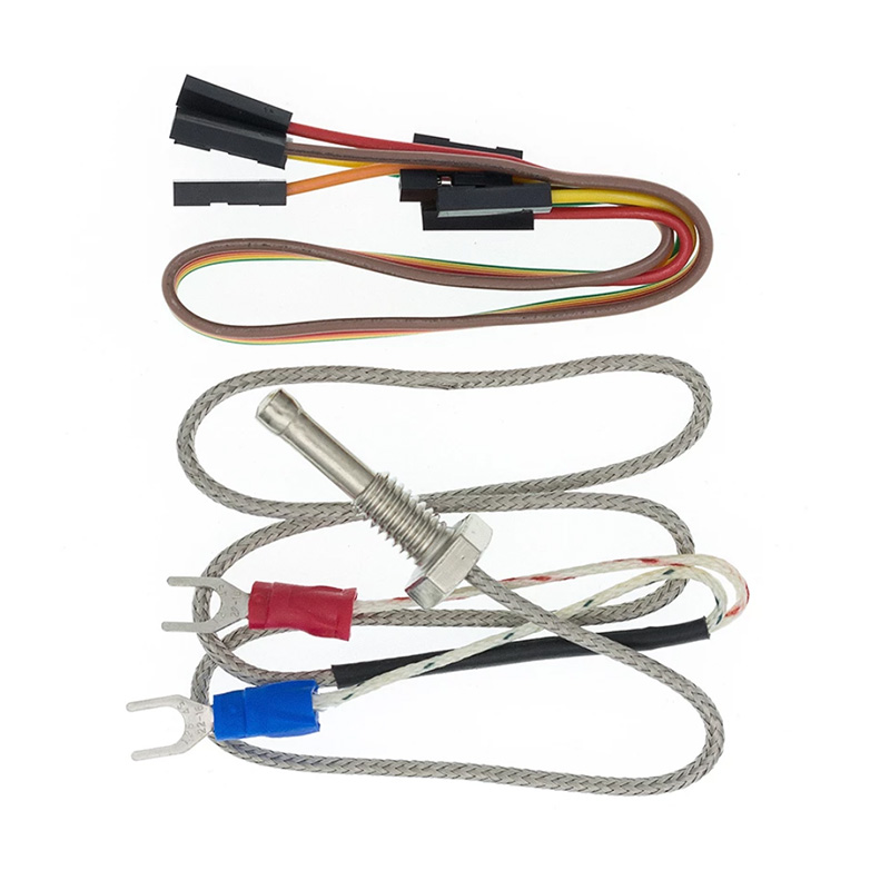 Supplied thermocouple sensor has a diameter of 4.5mm with a 6mm threaded mounting bolt. The total length of the sensor including cable and spade connectors is ~100cm.